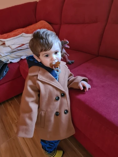 Пальто понравилось. Ребёнку 1 год, взяла размер 3Т (100см), хотела на осень, пока пальто большое и это хорошо. Очень понравилась ткань плотная шерсть. Пальто на теплую погоду,без особого утеплителя, тонкое, как пиджак