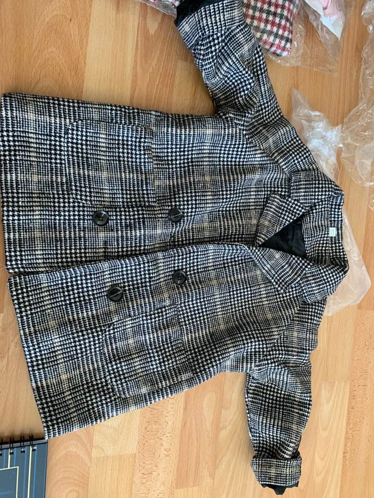 Посылку отправили уже на следующий день. Пришла очень быстро. Продавец положил 2 медицинские маски в подарок. Качеством очень довольна. Пальто (не пиджак!!!) легкое, с небольшим утеплителем. На 4,5 года взяла размер 5т. -сидит классно.