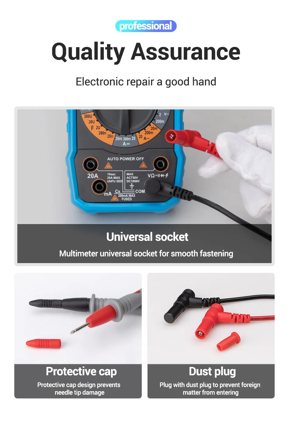 Силиконовый мультиметр для измерительных наконечников, 1 пара, 20 А...