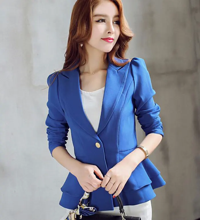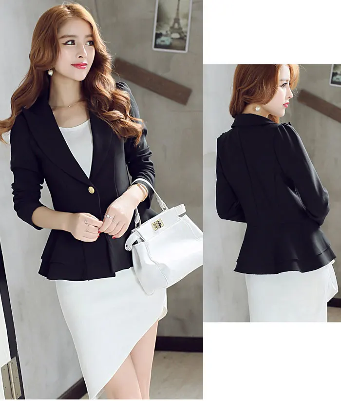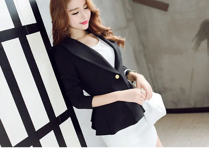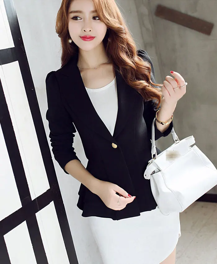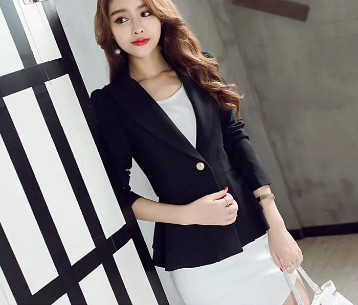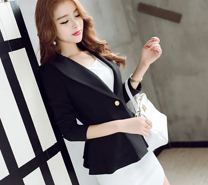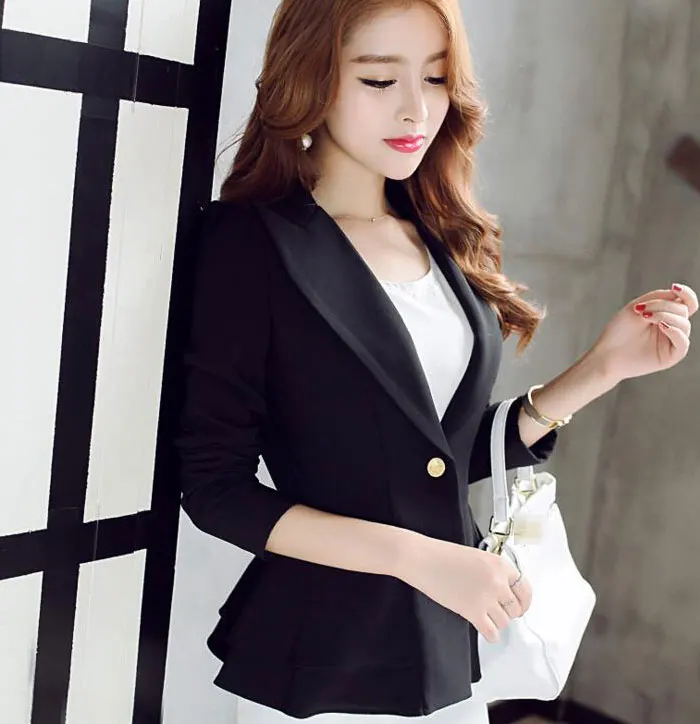 Для женщин Куртка Блейзер 2021 черный костюм с одной пуговицей с рюшами зубчатый пальто Slim Fit Женский офисный Жакет женский топы, костюмы, блейзер для женщин