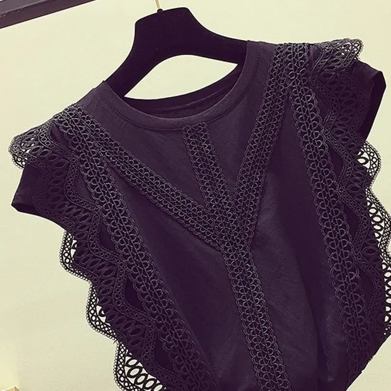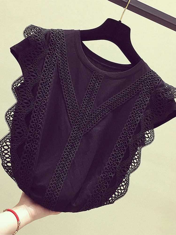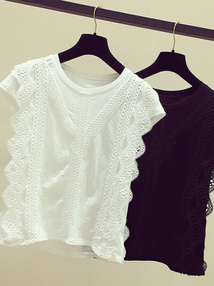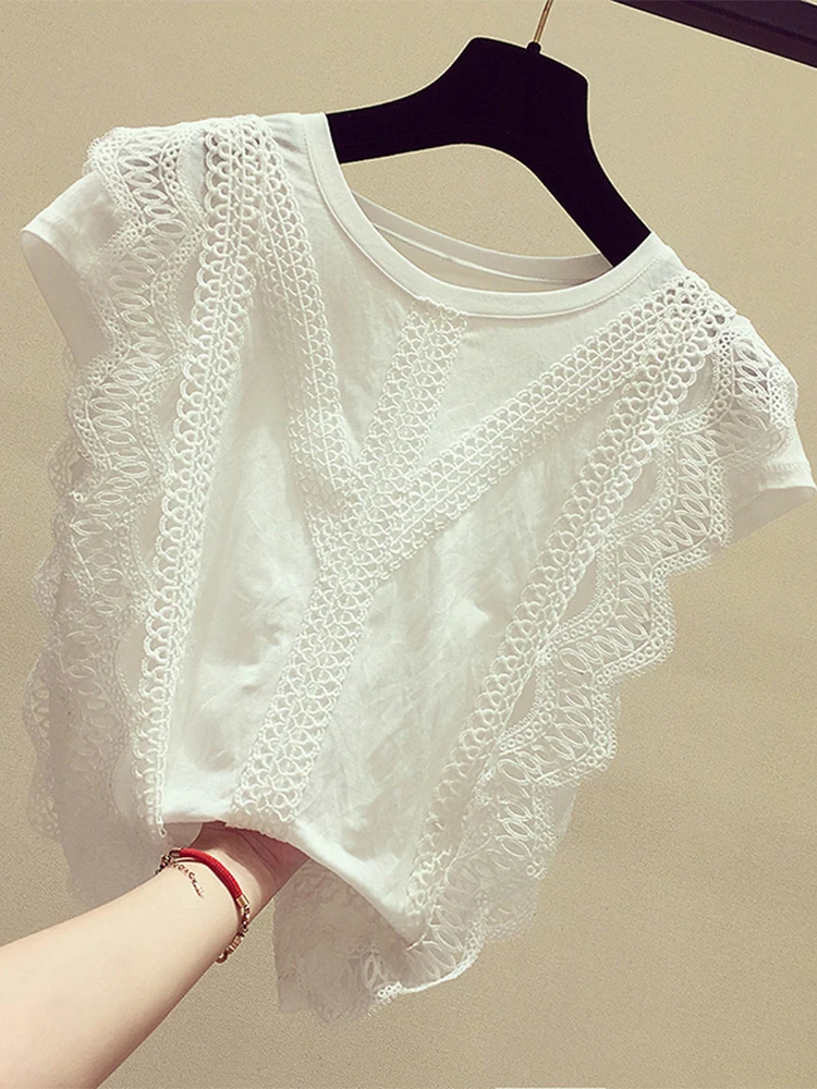 Модная одежда, Однотонная рубашка, лето 2020, Женские топы и блузки, кружевные лоскутные Блузы