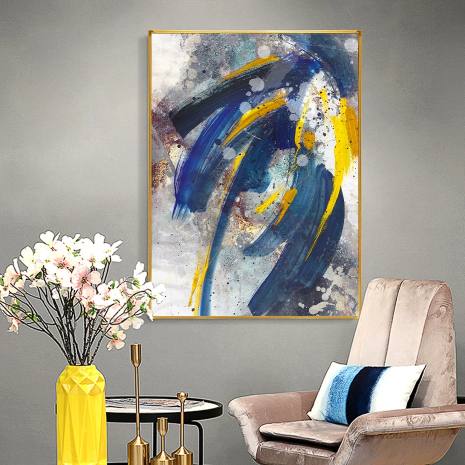 Абстрактные синие чернила, трендовый постер для рисования на холсте в стиле кисти, настенные художественные картины для гостиной, украшения дома без рамки