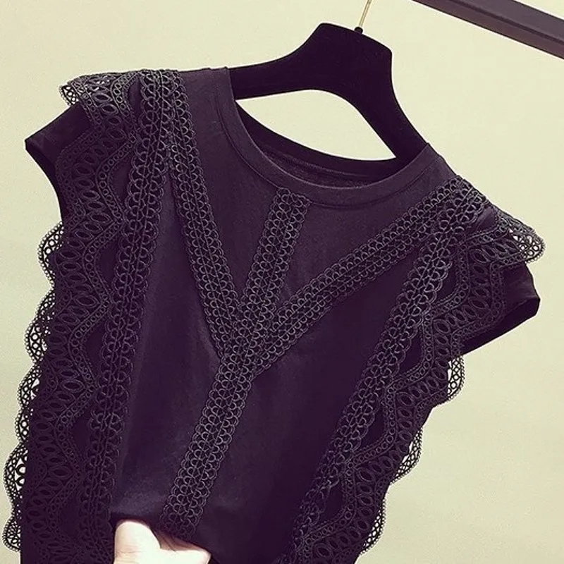 2019 Женские топы и блузки кружева пэчворк Корейская модная одежда ...