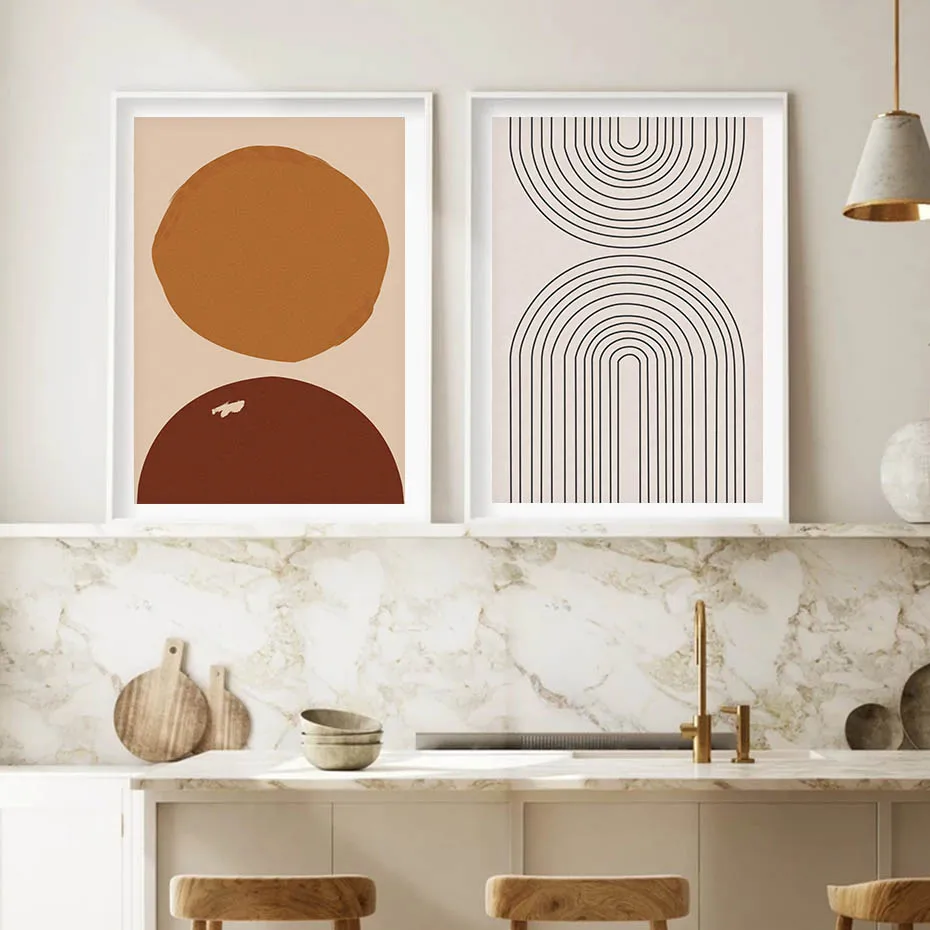 Абстрактная Терракотовая богемная Геометрическая линия, холст, живо...