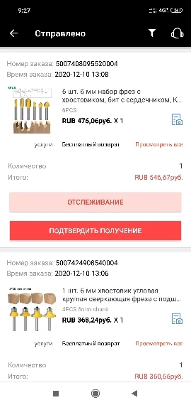 Отправление пришло быстро, за две недели до Ростовской области, упаковано все хорошо. Трек отслеживался. Сами фрезы сделаны качественно, сбалансированы хорошо, рез чистый. Я доволен и продуктом и продавцом. Рекомендую!