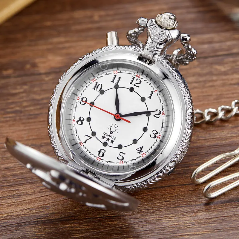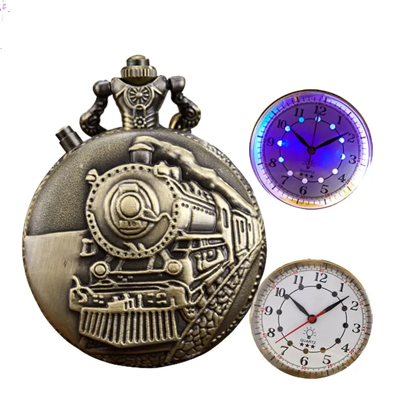 Светящиеся светодиодные винтажные часы со светодиодной подсветкой, флеш-колье часов, уникальные бронзовыесеребряныезолотые часы с паровозиком и двигателем, серебристые кварцевые карманные часы