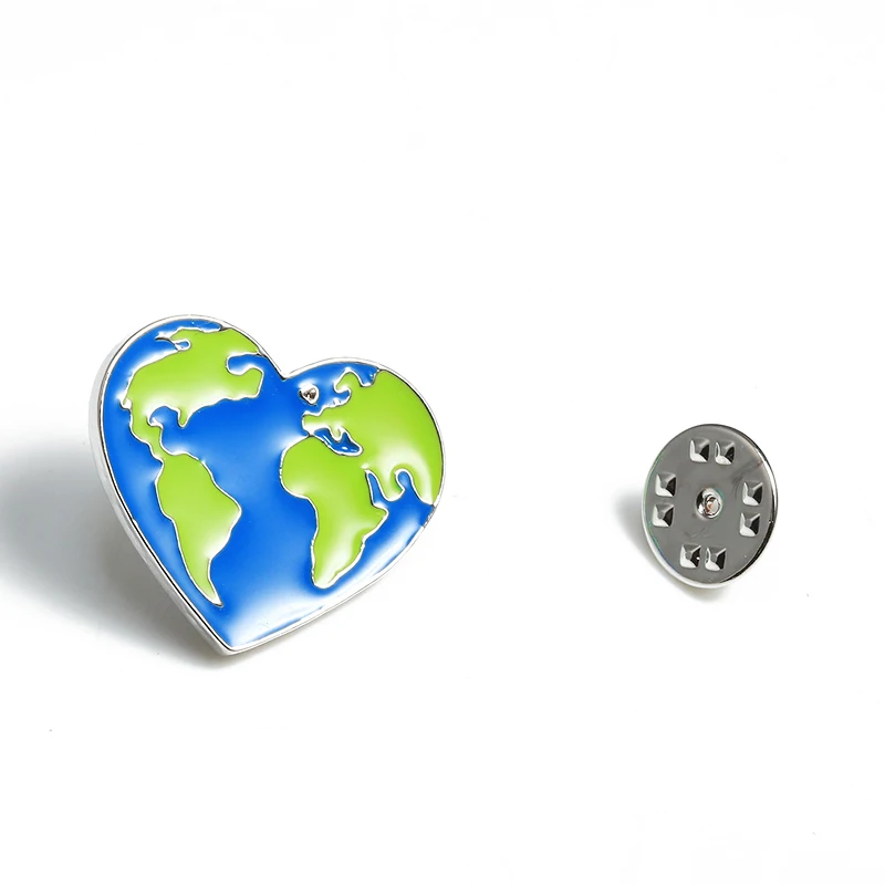 Эмалированные булавки с защитой земли, мультяшные броши в форме сердца, булавки для курток, лацканов, значок для рюкзака, модная бижутерия, подарки для экологилиста