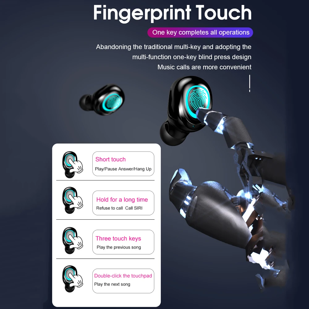 Сенсорные беспроводные наушники TWS 5,0 Bluetooth-наушники HiFi сте...