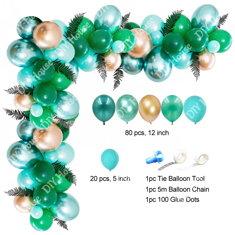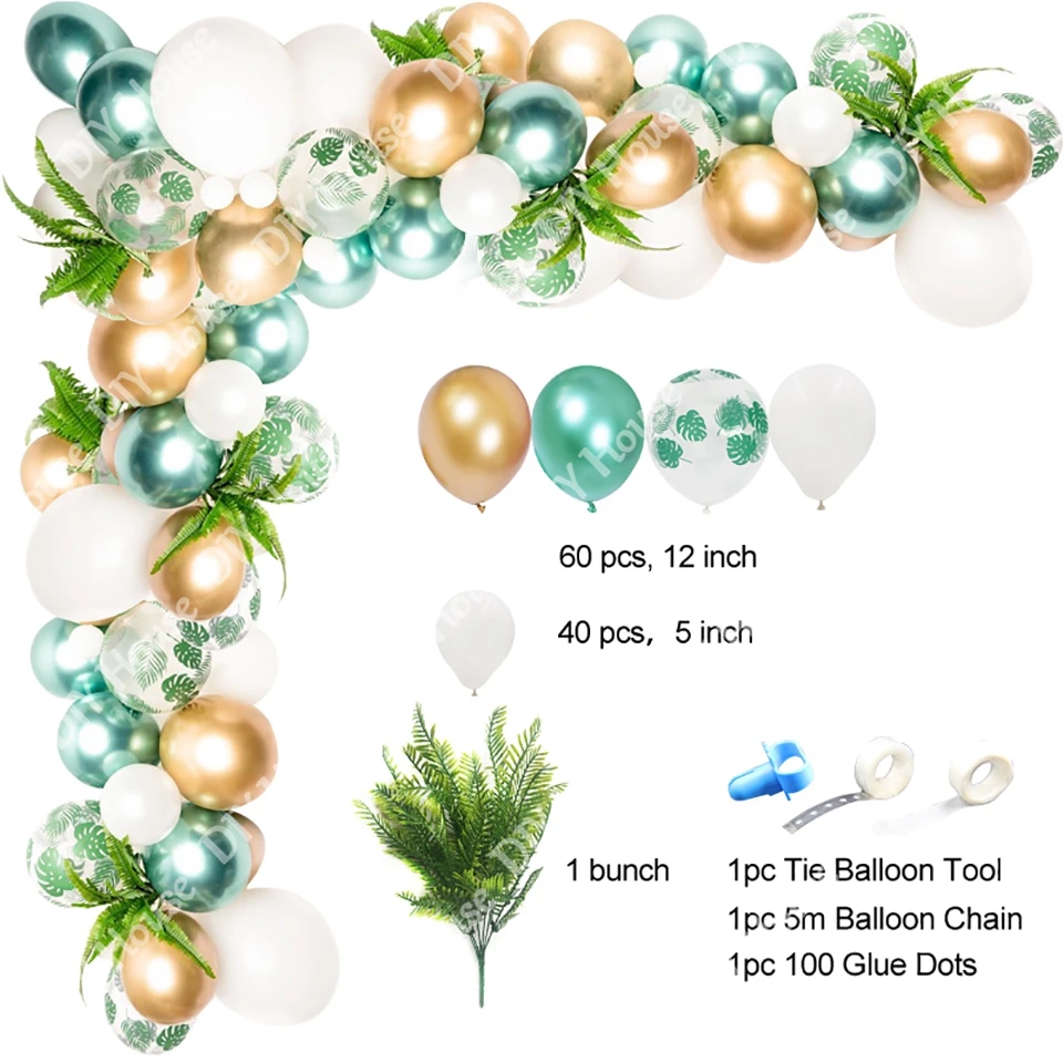 100 шт. воздушных шаров, арочный комплект зеленых конфетти, металлический шары для свадьбы и дня рождения, декор для вечевечерние в джунглях, для детского душа, гававечерние, латексный шар