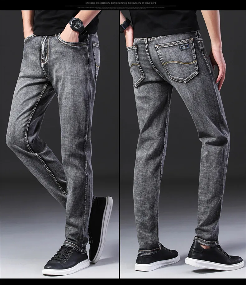 Классические мужские джинсы, высококачественные деловые повседневные эластичные джинсовые брюки, мужские брендовые серые брюки