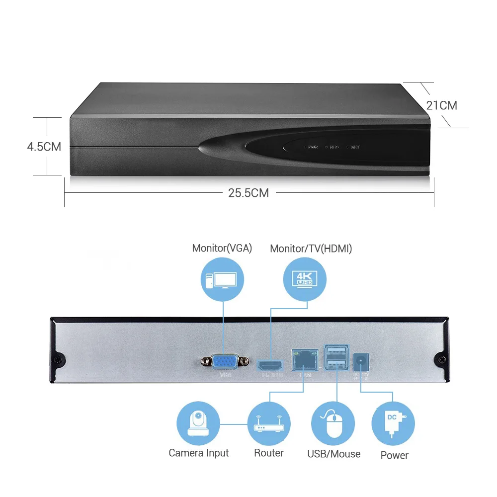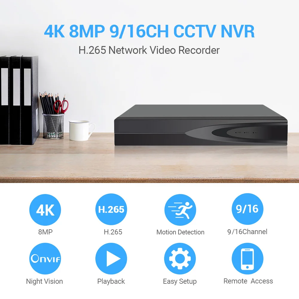 Сетевой видеорегистратор Hamrolte H.265, ONVIF, 8 Мп, NVR, 169 каналов, 4K, сетевой видеорегистратор с функцией обнаружения лица, Xmeye, Cloud Max, 4K, P2P