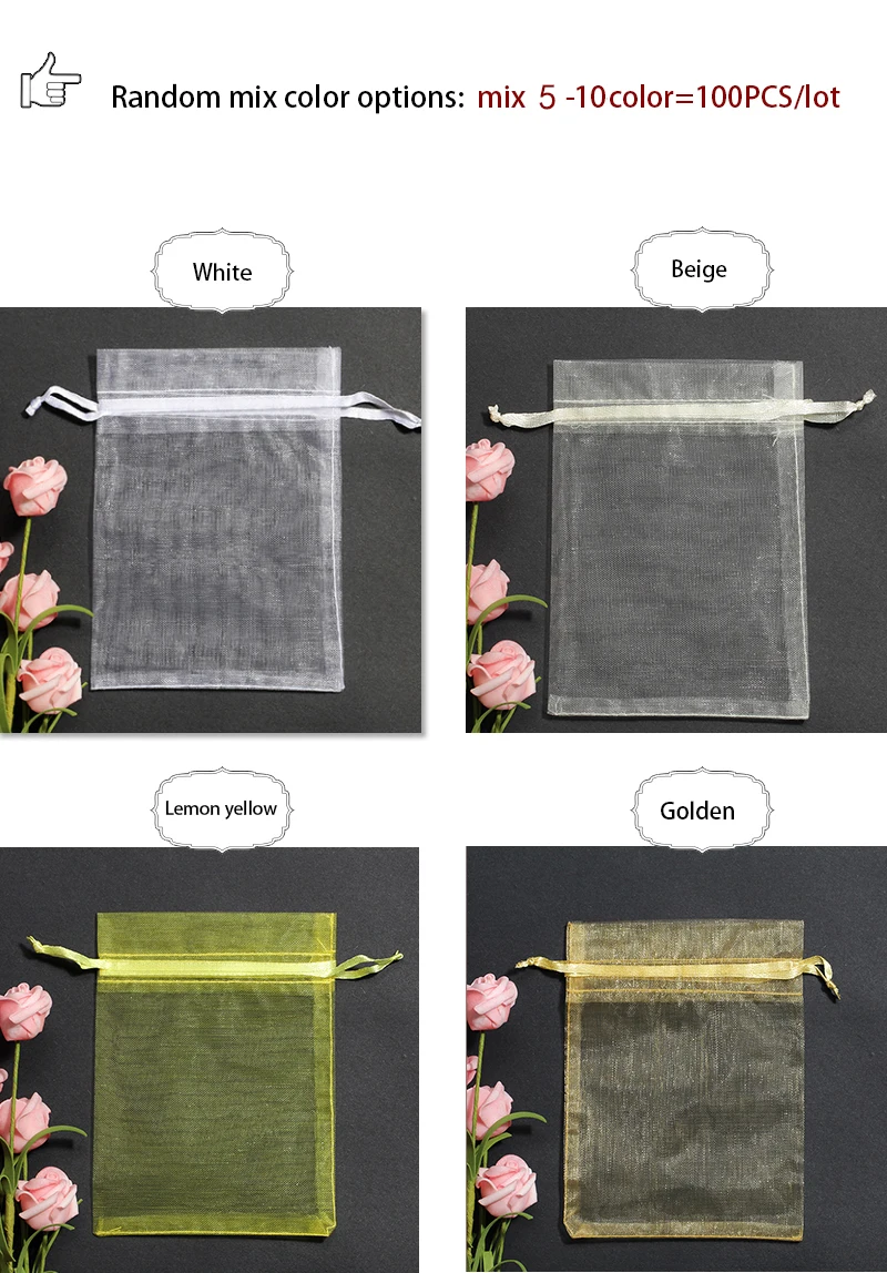 100 шт.лот, Сумка из органзы, упаковка для ювелирных изделий, конфетные Свадебные вечерние пакеты для торта