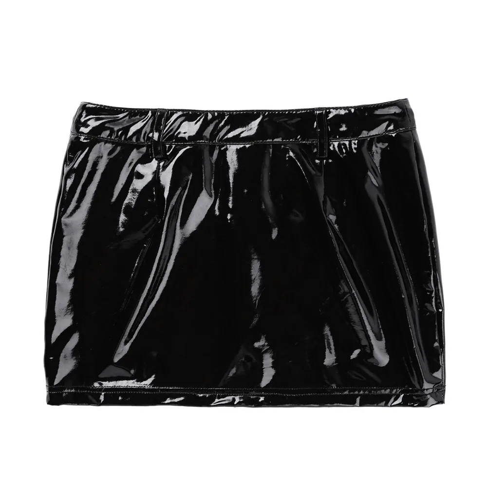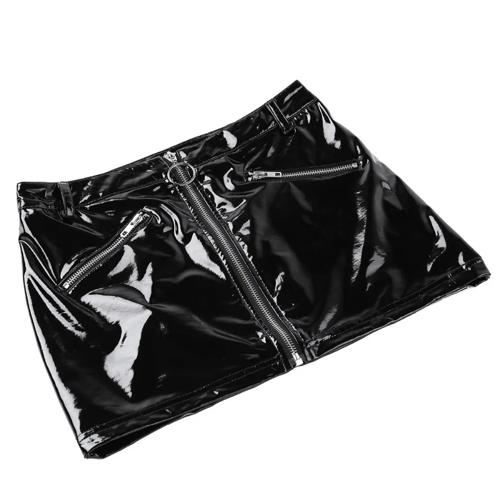 Women Wet Look PVC Faux Leather Sexy Mini Skirt Latex Zipper Gothic Bodycon Pencil Skirt Nightclub Clubwear Pole Dance Skirt