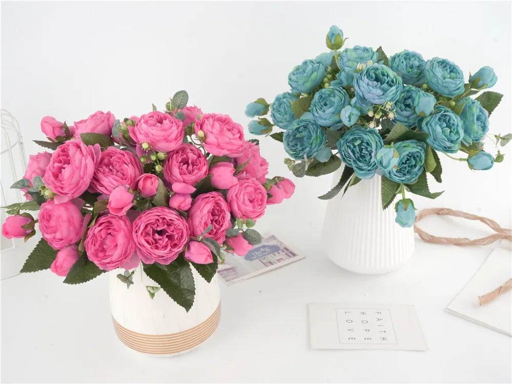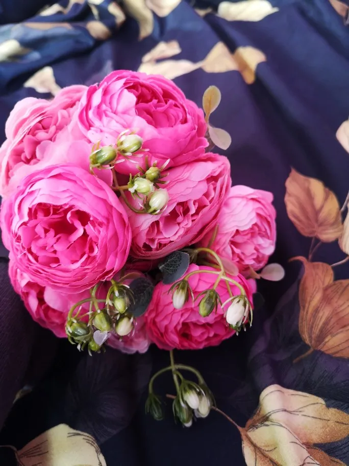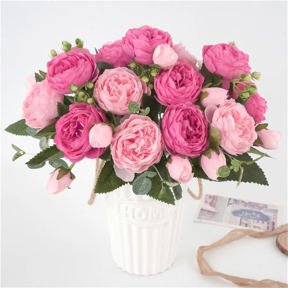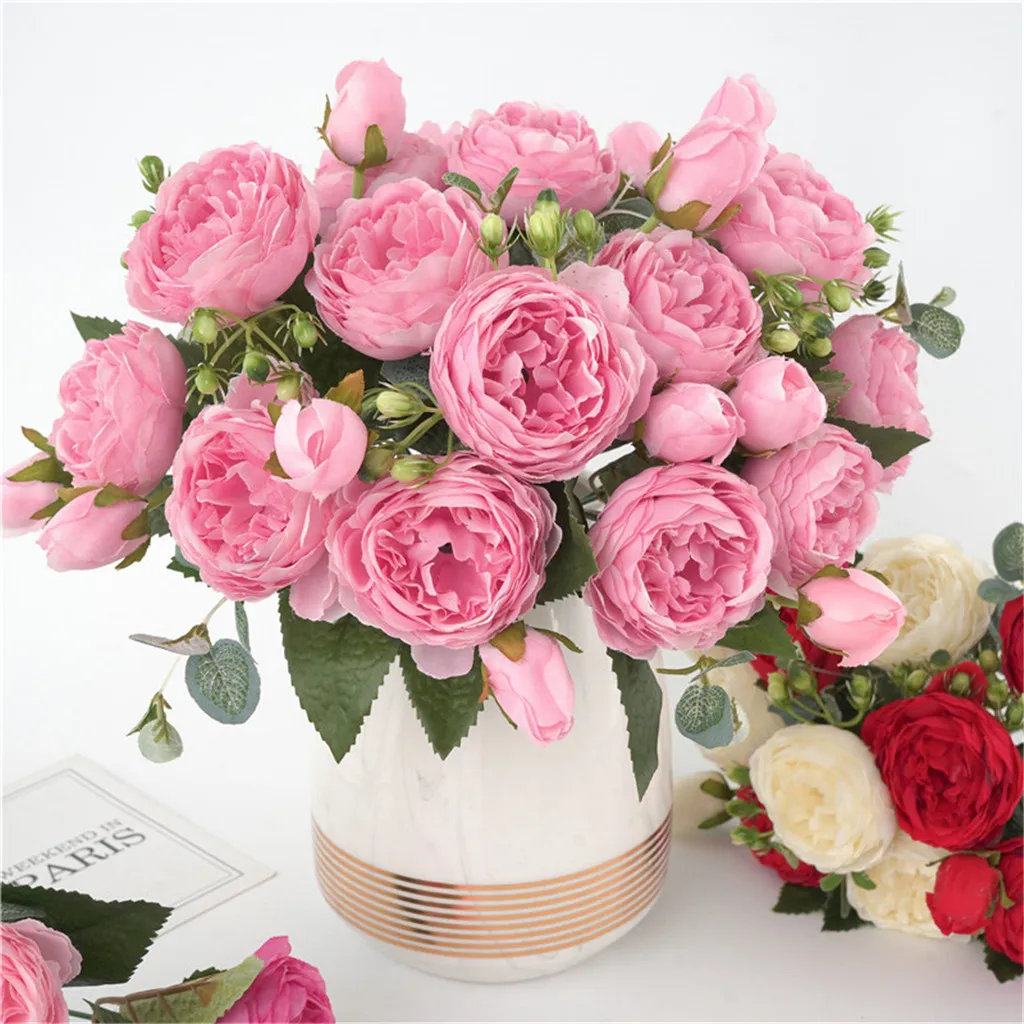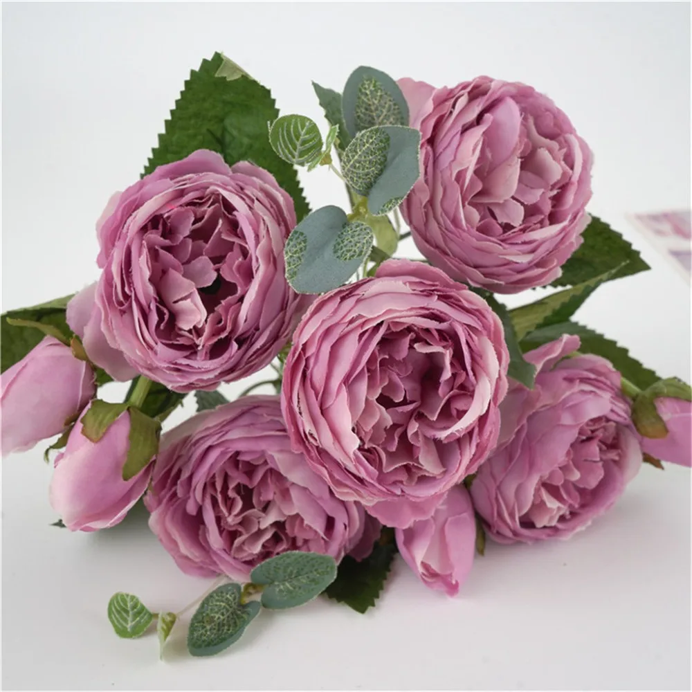 Букет искусственных шелковых пионов 30 см, 5 больших головок, 4 маленьких бутона, Искусственный Декоративные искусственные цветы для невесты, свадьбы, дома