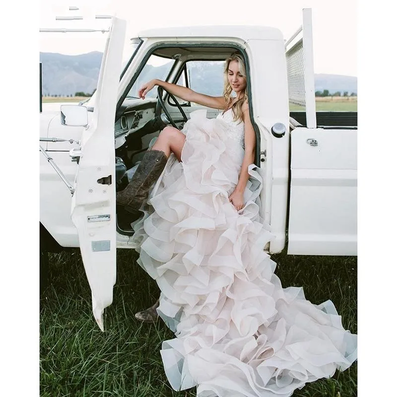 Роскошные свадебные платья E JUE SHUNG из органзы на тонких бретель...