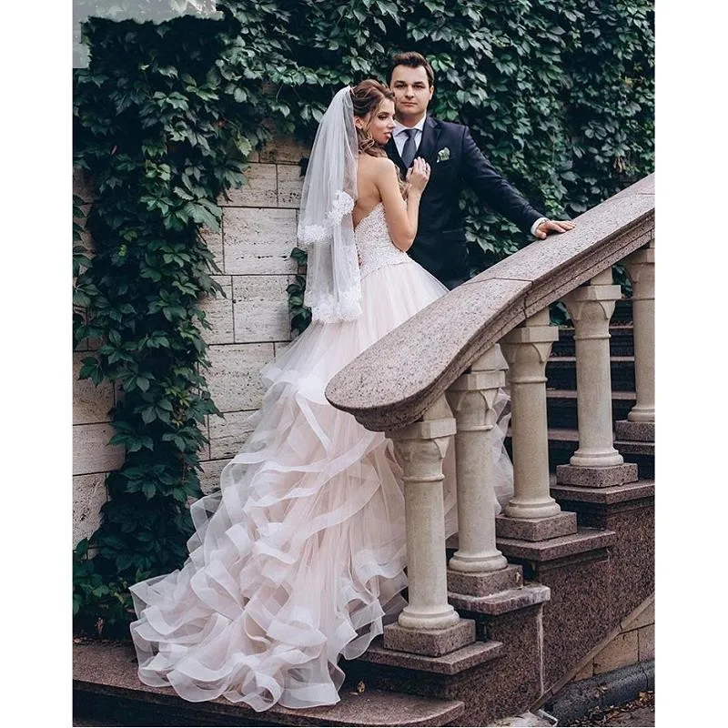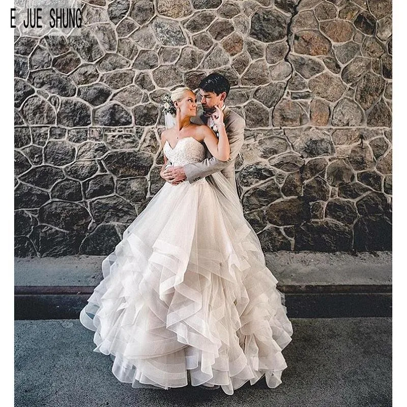 E JUE SHUNG элегантное светильник-Розовое Свадебное Платье милое с кружевной аппликацией, без рукавов с оборками свадебное платье