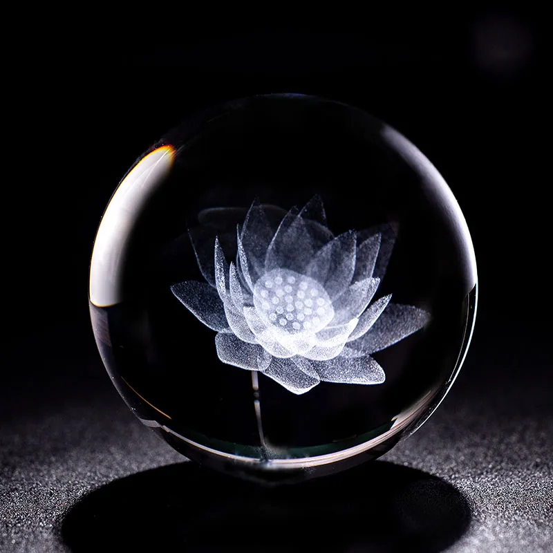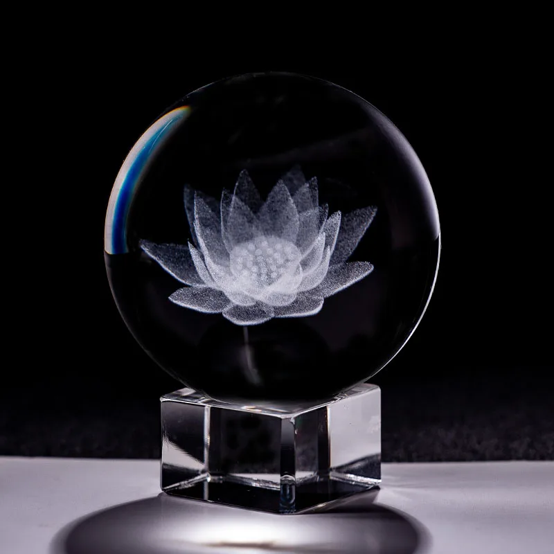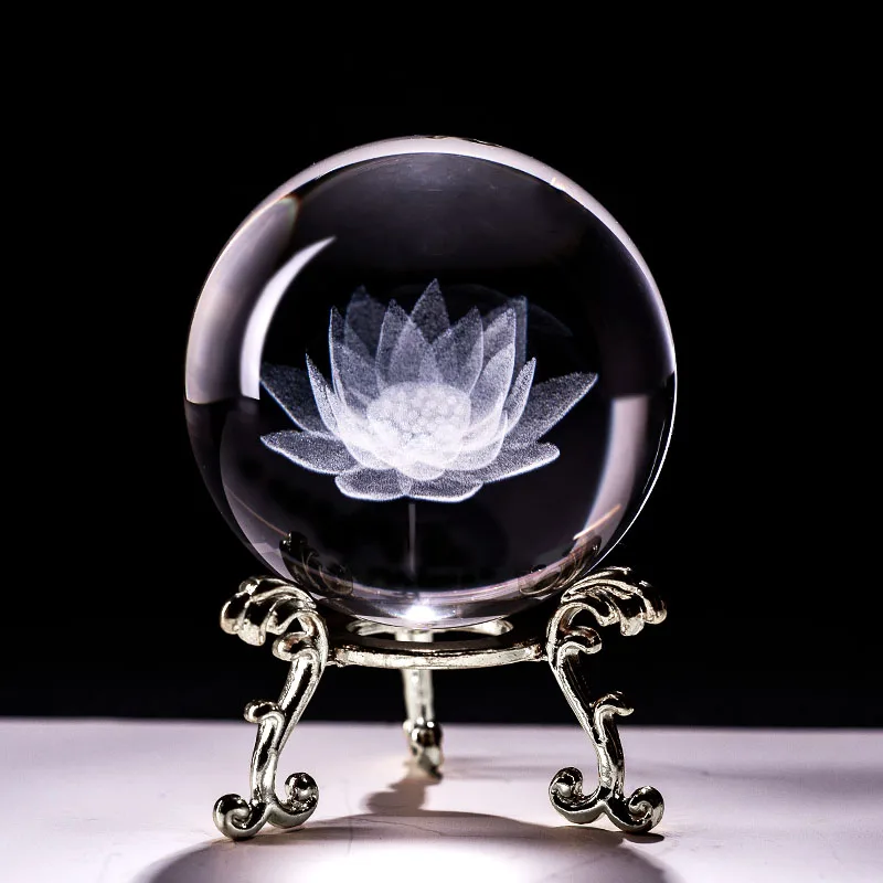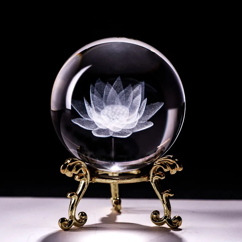 Хрустальный шар, 60 мм, объемная резьба, пресс-папье с подставкой, исцеление, медитация, стеклянная сфера, Декор для дома в стиле Фэн-Шуя украшения, цветок лотоса