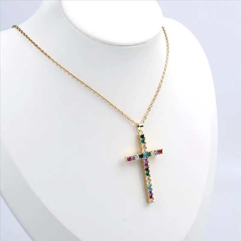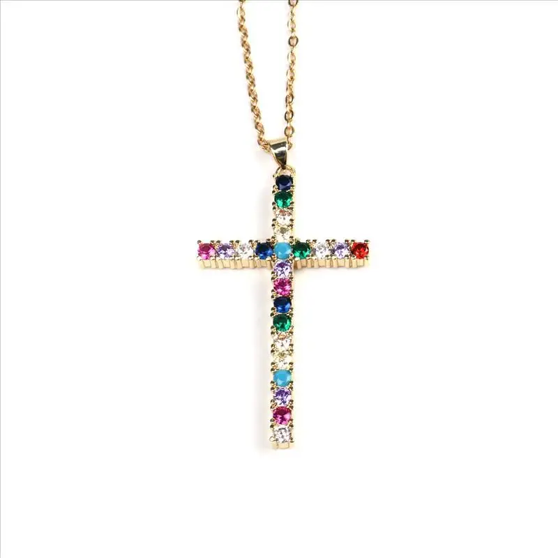 Новое религиозное ожерелье из нержавеющей стали и меди золотого цвета с крестом и разноцветным кубическим цирконием, женское ювелирное изделие в подарок длиной 45 см, 1 шт.