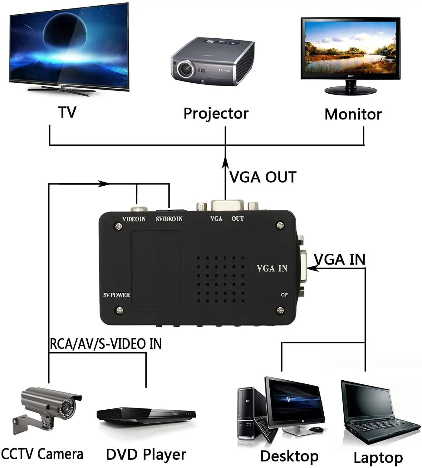 Цифровой преобразователь S-video BNC VGA для ПК ТВ камеры DVD DVR
