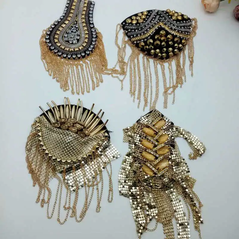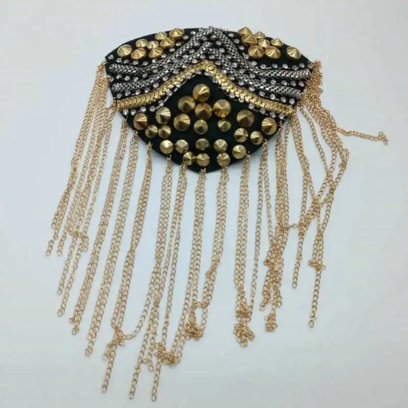 2 шт., мужская и женская цепочка с кисточками, панк, на плечо, значок, брошь, свадебные Клубные вечерние ювелирные изделия Броши со стразами для корсажа, Epaulet