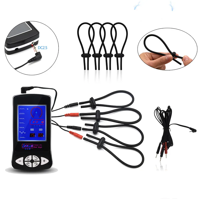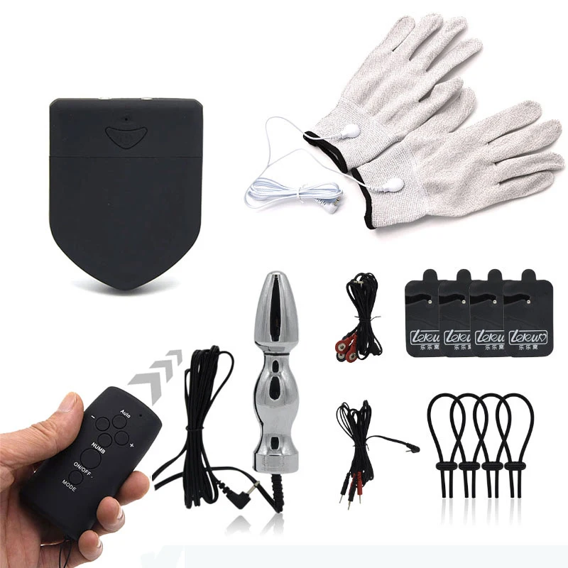 Электрический шок набор, электро пенис кольцо Массаж сосков Зажимы перчатки Массаж Анальная пробка медицинские тематические секс-игрушки для мужчин и женщин