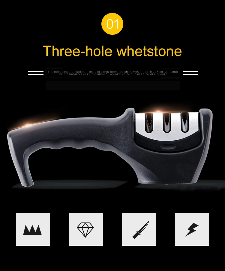 Точилка с тремя отверстиями, Затачивайте нож по мере необходимости, легко Режьте и ешьте, Трехступенчатый нож для заточки, прочный материал, несколько ножей можно заточить, быстро и экономично