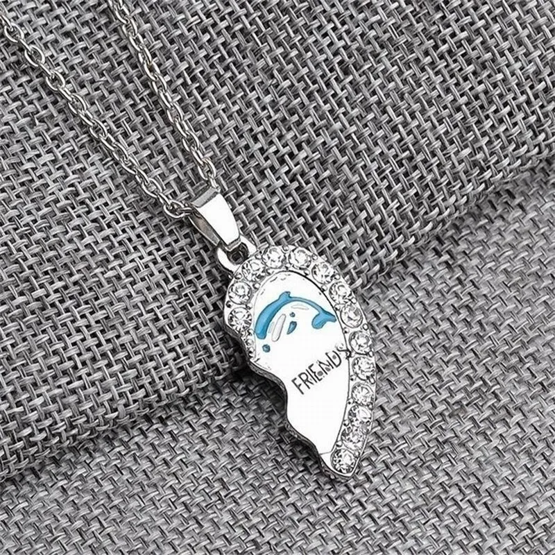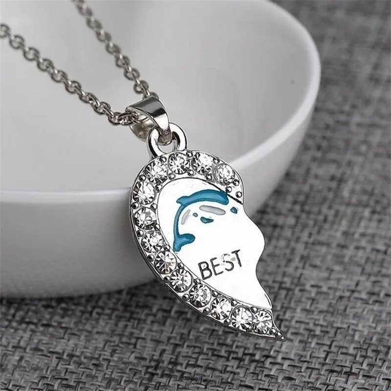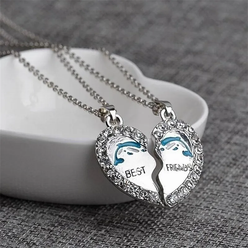 2 шт.компл. Best Friends Forever ожерелье синий Дельфин в форме сердца со стразами Подвески женские ожерелья ювелирные изделия для дружбы