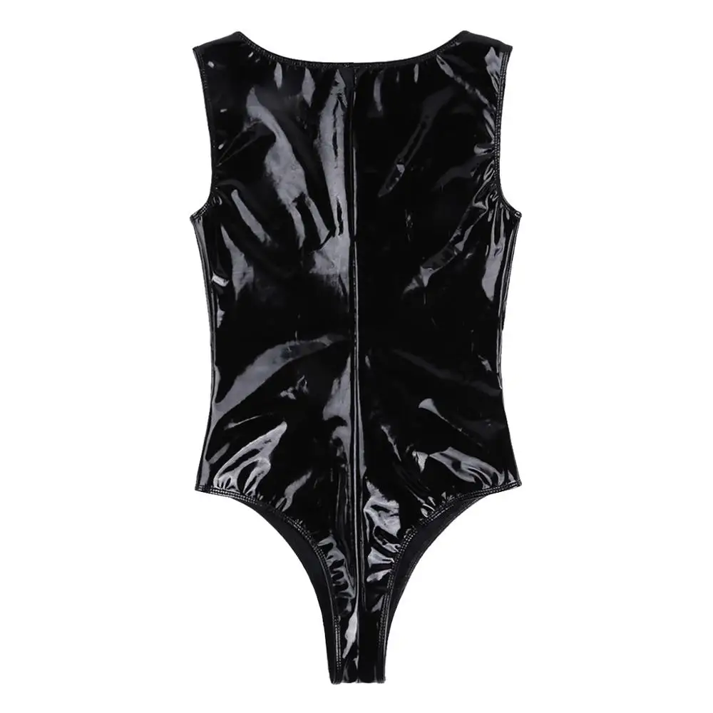 Женский Цельный боди-трико, дизайн wetlook из искусственной кожи.