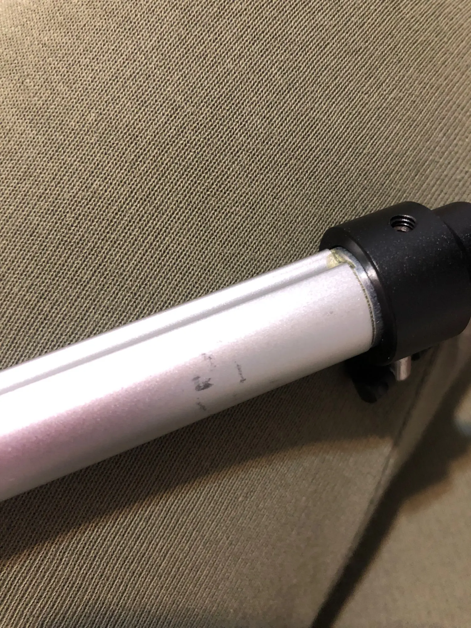 хлипкая головка и винт в основании. трубка вклеена в нижний шарнир клей видно. кроме нижнего основания конструкция выглядит хлипко.