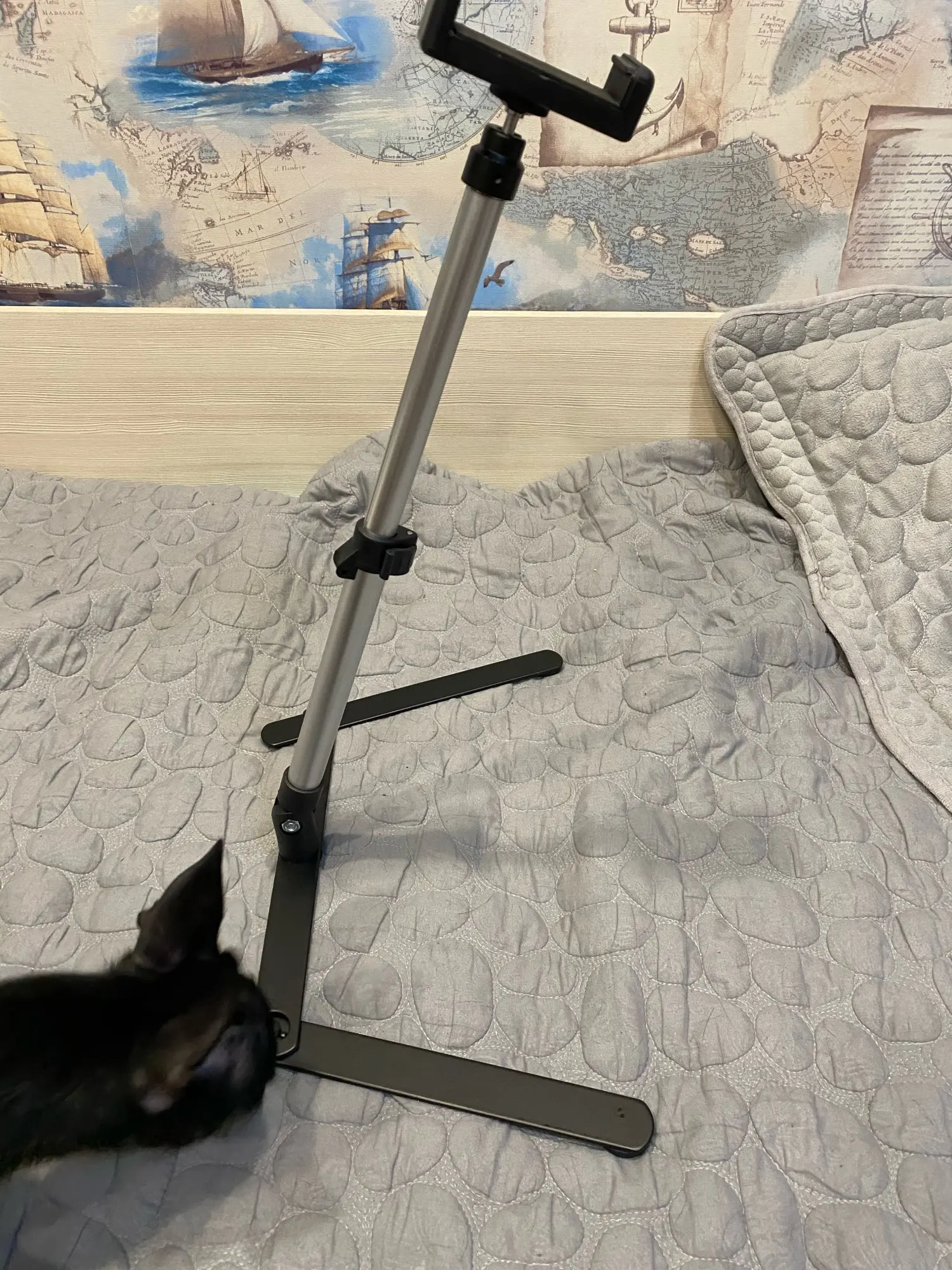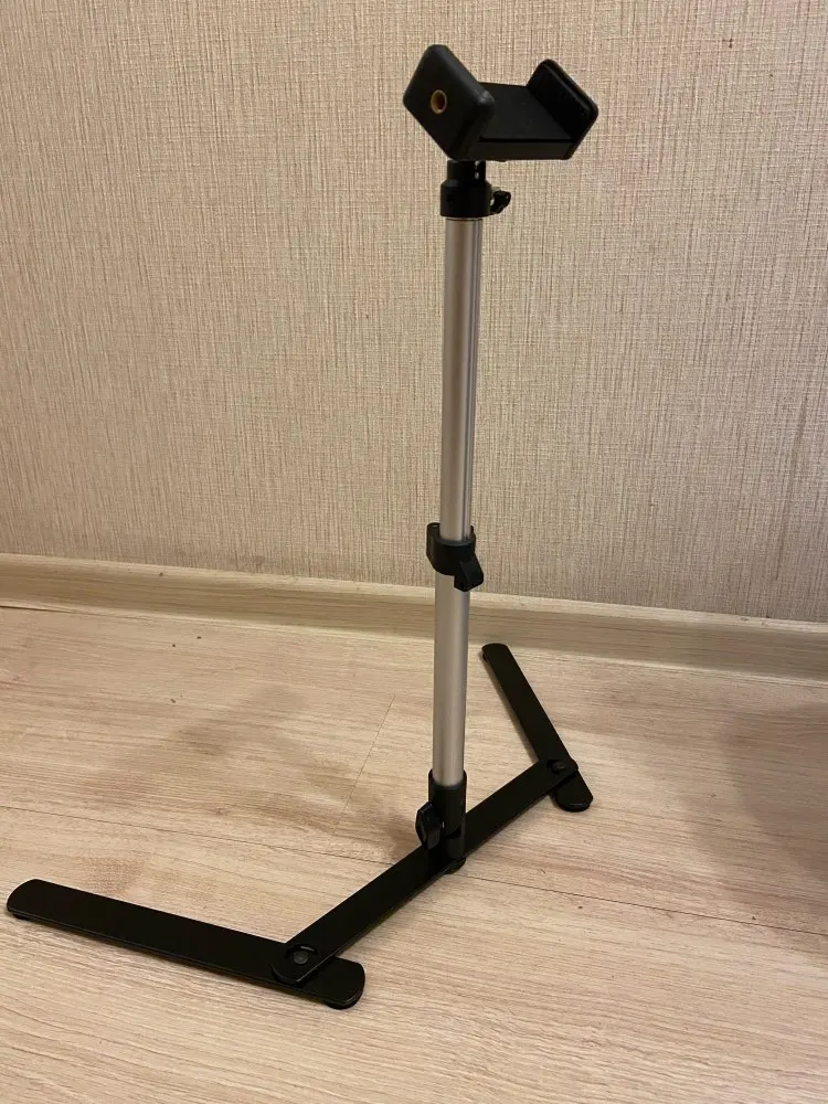 за свою цену очень хороший штатив, даже мой 11 pro max в массивном чехле держит хорошо~ собирается легко супер
