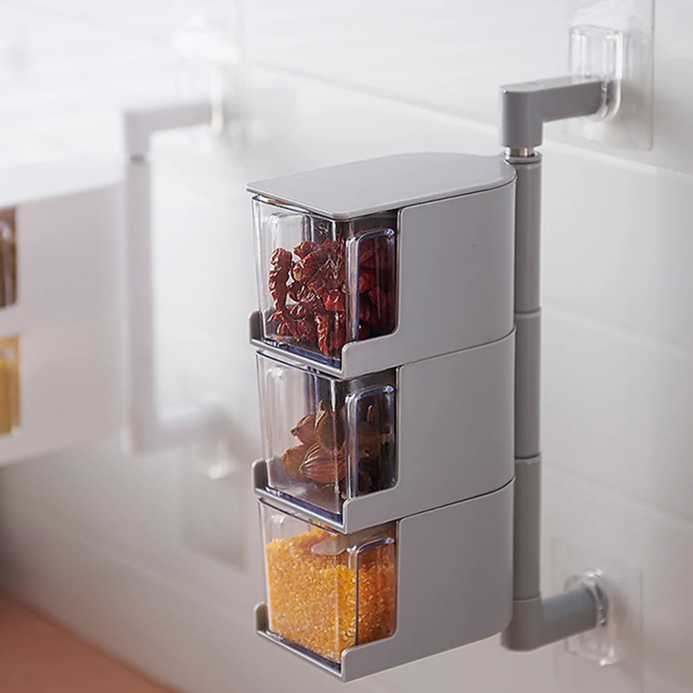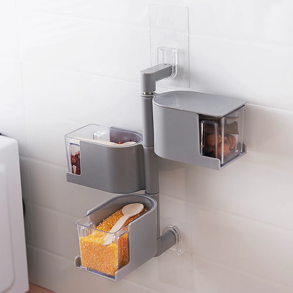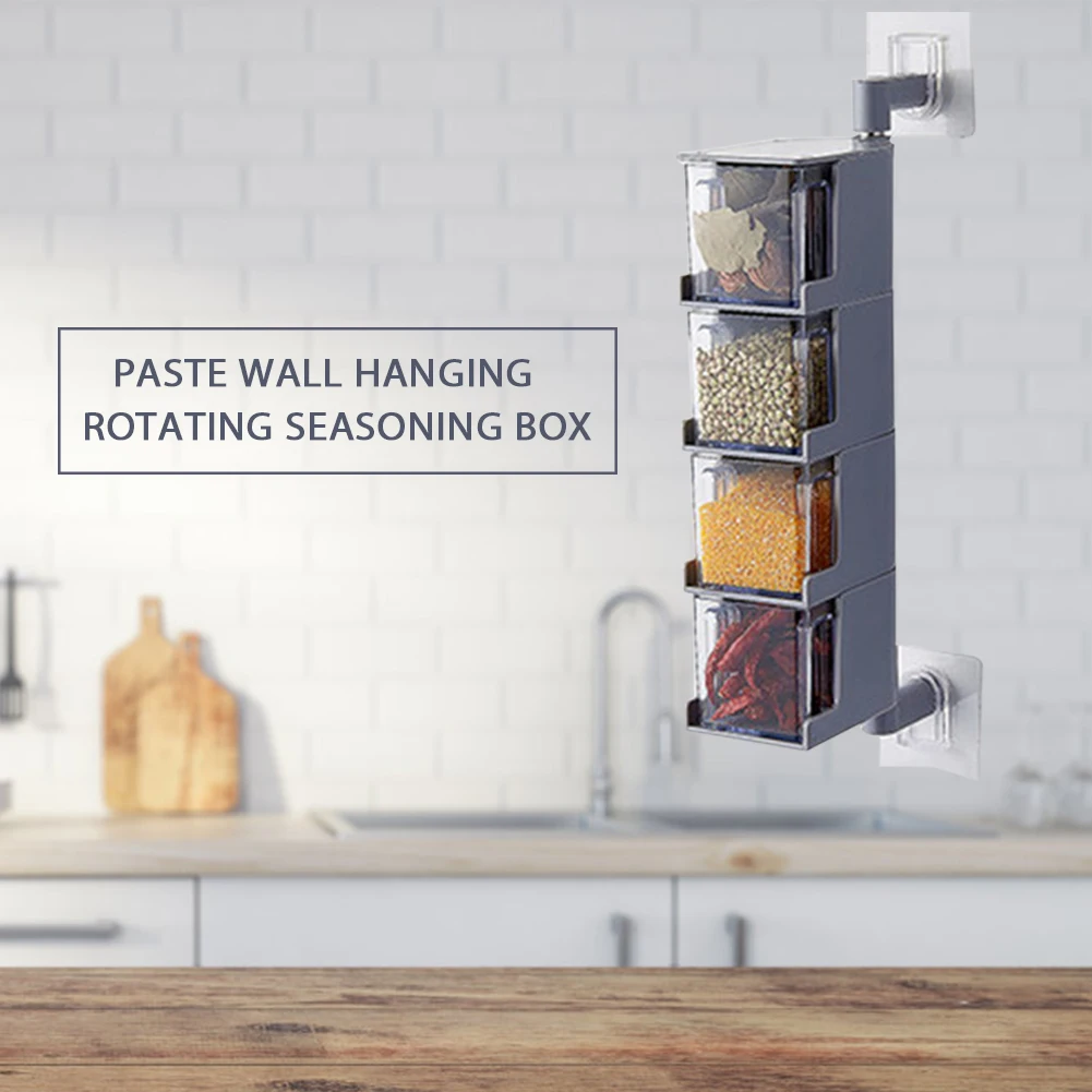Вращающаяся настенная приправа, коробка для соли, сахара, специй, хранения, подвесная полка для приправ, кухонные гаджеты, посуда