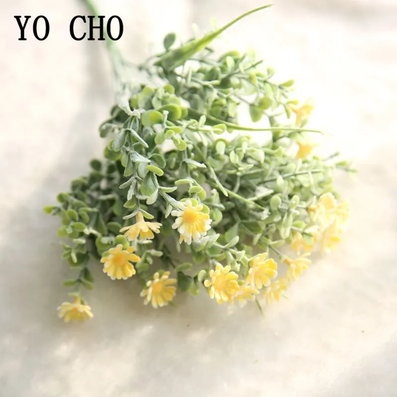 Йо Чо Флокирование Гербера Искусственные цветы маленький букет пластиковые поддельные цветы Маргаритка Свадебный декор букета Внутри искусственный Флорес DIY поставка