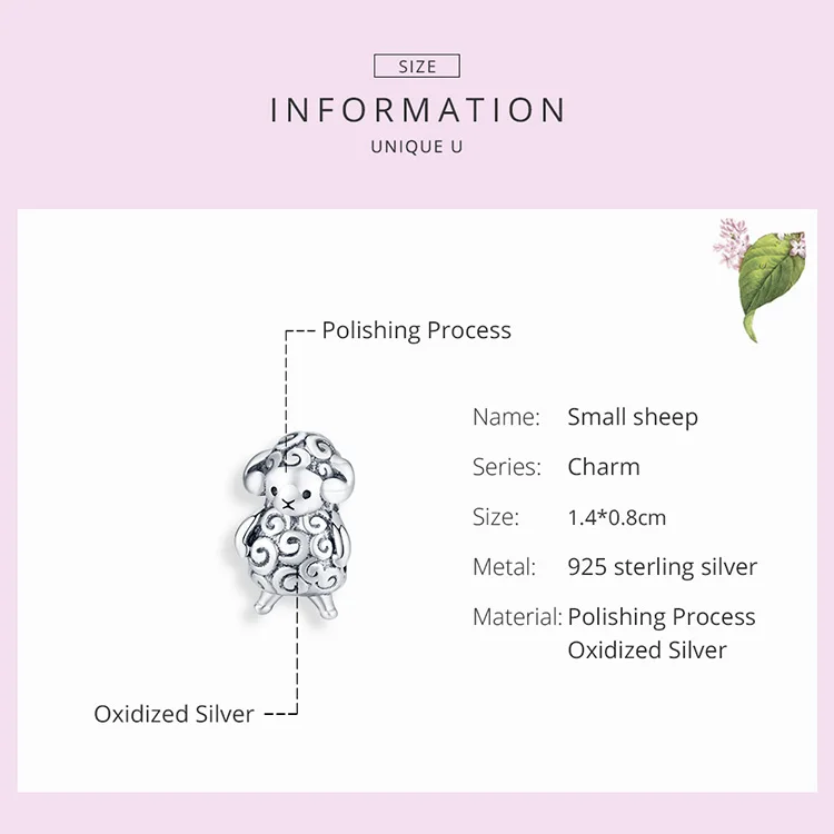Материал: S925 + ожерелье платинового цвета Размеры: 1,4*0,8 см Описание: Детская маленькая овечка с милыми маленькими вылеченными волосами придаст вам жизненную силу и энергию.
