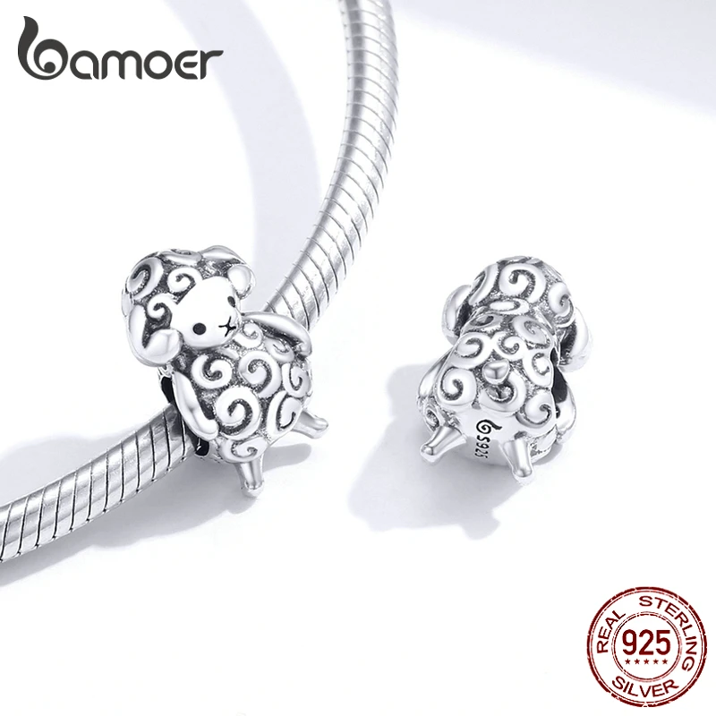 Bamoer Аутентичные 925 пробы серебряные Детские Овцы животные металлические бусины для изготовления ювелирных изделий Серебряный Шарм Подходит оригинальный браслет BSC187