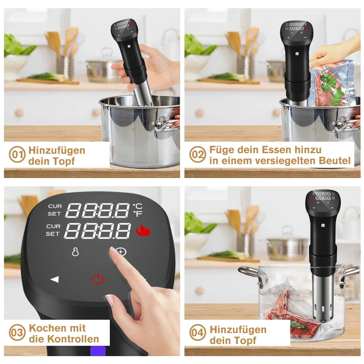 Термостат погружной циркуляционный 1800 Вт с функциями контроль времени и температуры, большой цифровой LCD дисплей, Sous Vide