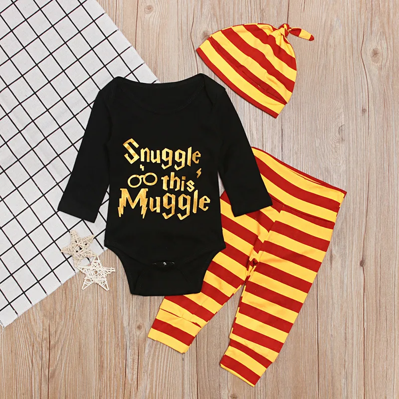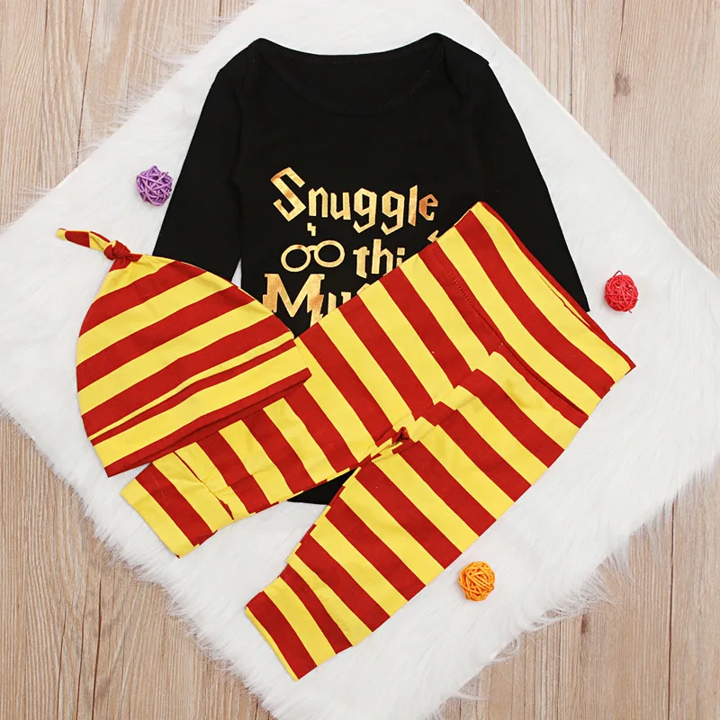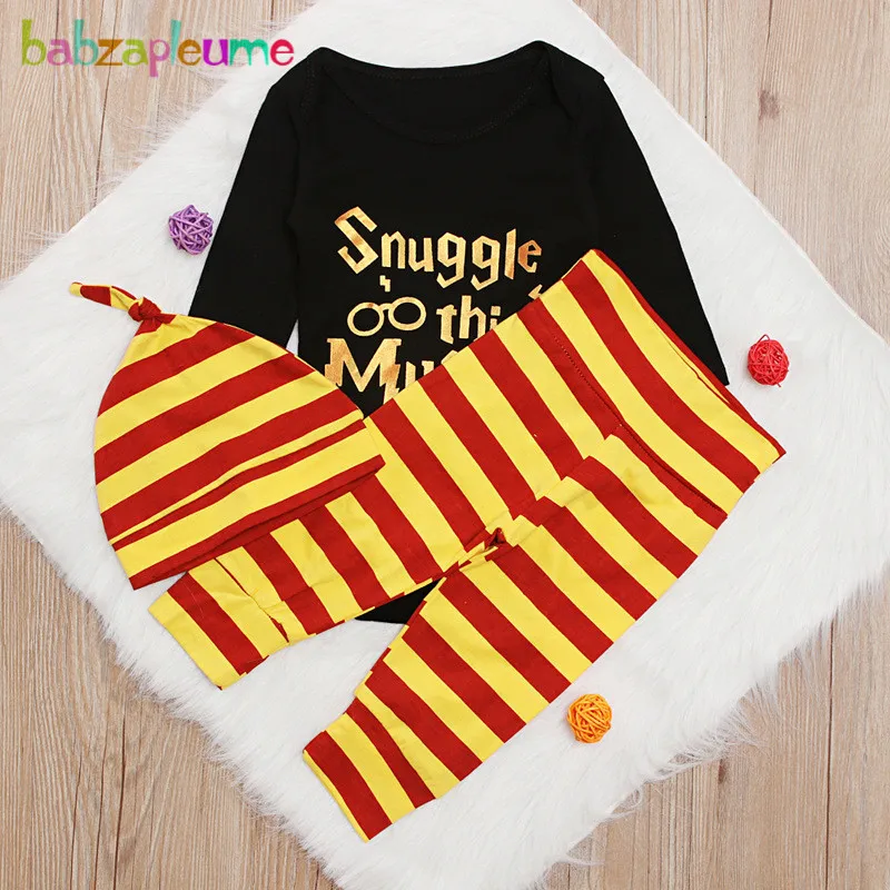 Весенняя одежда для маленьких мальчиков, 3 предмета, 2020 повседневный комбинезон с длинными рукавами и надписью + штаны в полоску + шапочка, комплекты одежды для новорожденных, BC1578-1