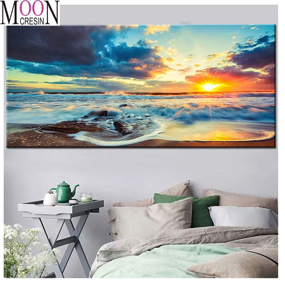 Алмазная живопись с пейзажем пляжа, полноразмерная круглая 5d Вышивка сделай сам, мозаика из страз, морской пейзаж, вышивка крестиком, домашнее искусство