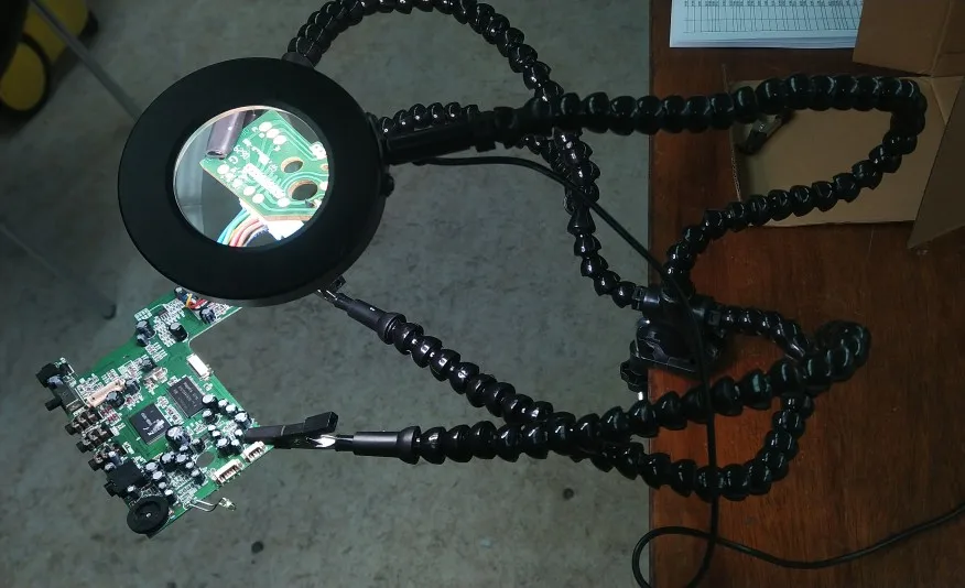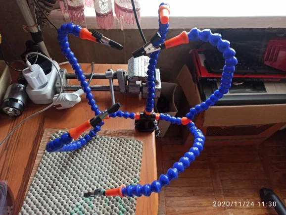продавец отправил через 5 дней посылка шла 24 дня приспособа неплохая платы держит неплохо лупа и подсветка светит хорошо регулируется свет разными тонами кронштейн как все говорят да слабенький а так неплохой держатель можно брать
