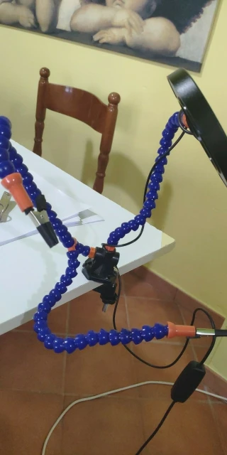 Крепление кронштейна к столу не плотно прижимается, в конце Закрепите его для некоторых весов. Увеличительное стекло имеет много вариантов и большую мощность, то есть, я хотел бы, чтобы увеличительное стекло было больше. В противном случае продукт имеет хорошее качество. Он соответствует именно фотографиям и доставке из Испании, это было очень быстро.