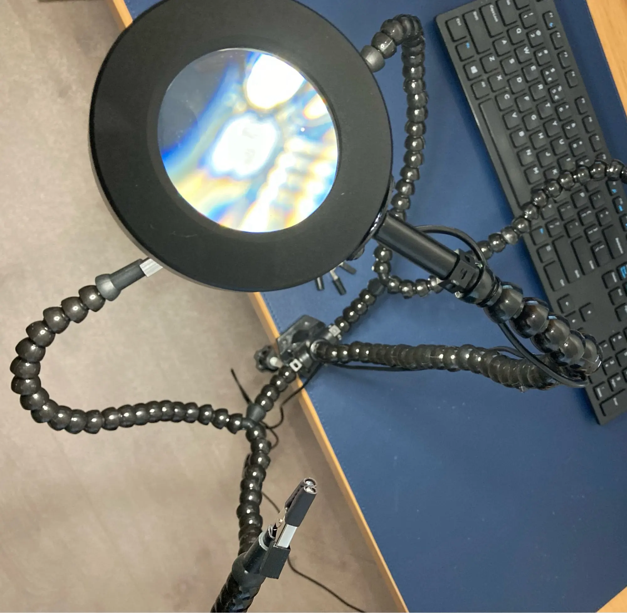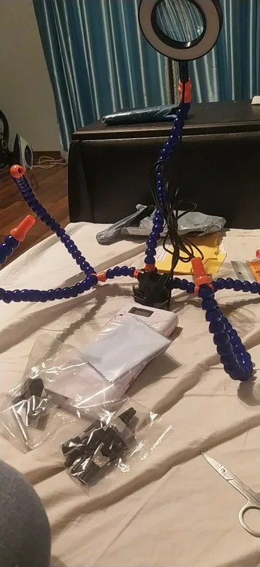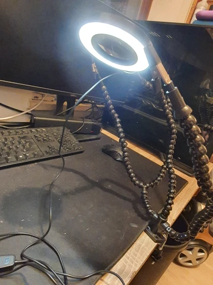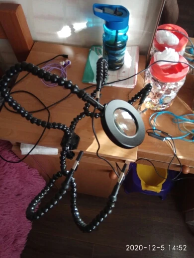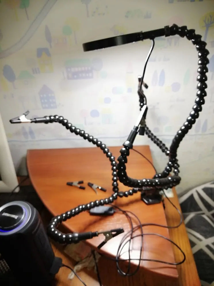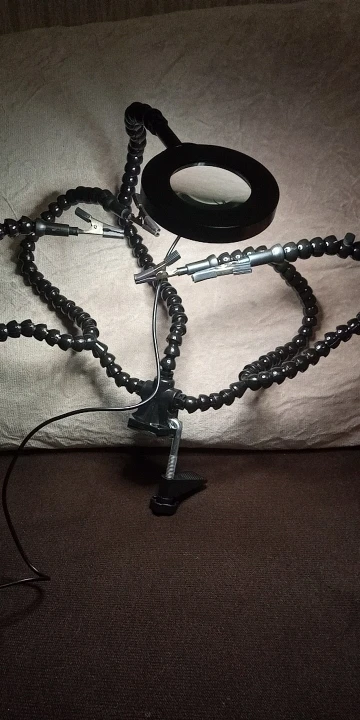 Пришло быстро. Очень хорошее крепление к столу, пинцет аккуратно и надежно удерживает. Щупальца достаточно жесткие, чтобы было немного трудно перемещать их и не двигаться самостоятельно, положив на них небольшой вес. Увеличительное стекло не очень большое, но оно достаточно. Свет отличный и очень оригинальный.