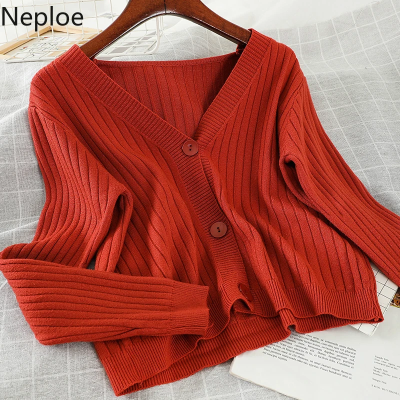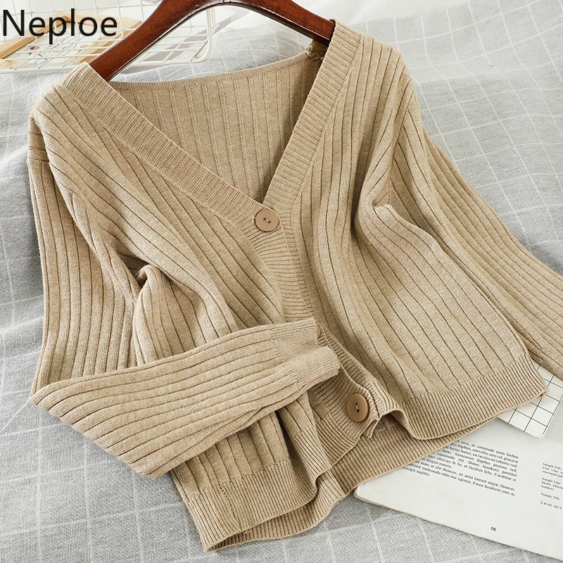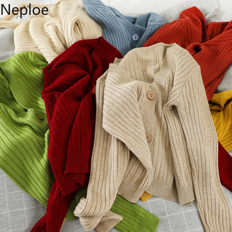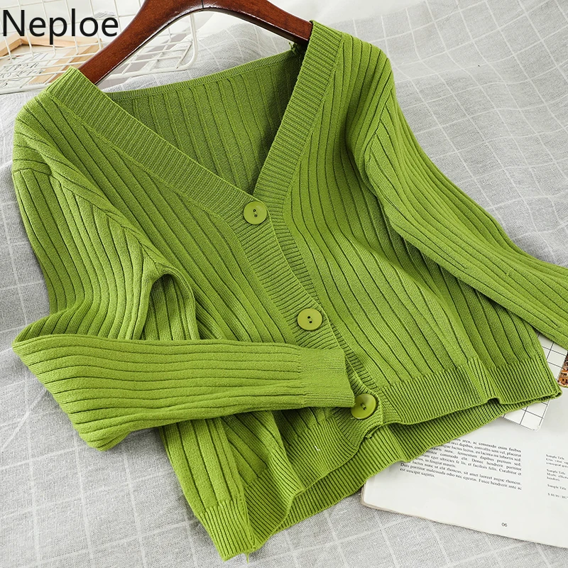Новинка, однотонный вязаный кардиган Neploe, Модный женский однобортный свитер с длинным рукавом, повседневные свободные кардиганы с V-образным вырезом 2022 года, 1B091