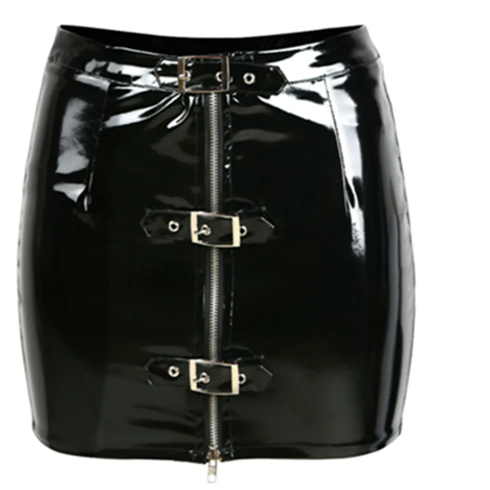 Женская сексуальная черная юбка-карандаш из ПВХ, латекса, виниловая, на молнии, с регулируемой кнопкой, блестящая Клубная одежда, облегающая мини-юбка