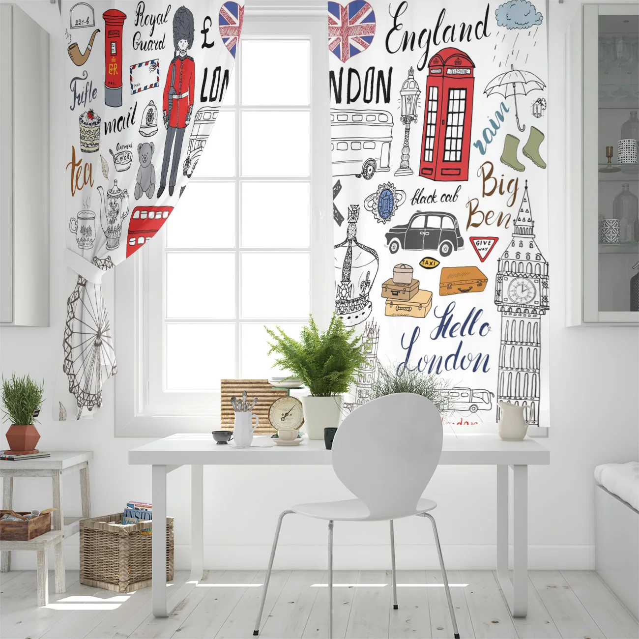 Занавески на окна с изображением британской Лондонской культуры, занавески s, наружные, для кухни, спальни, тканевые занавески на окна