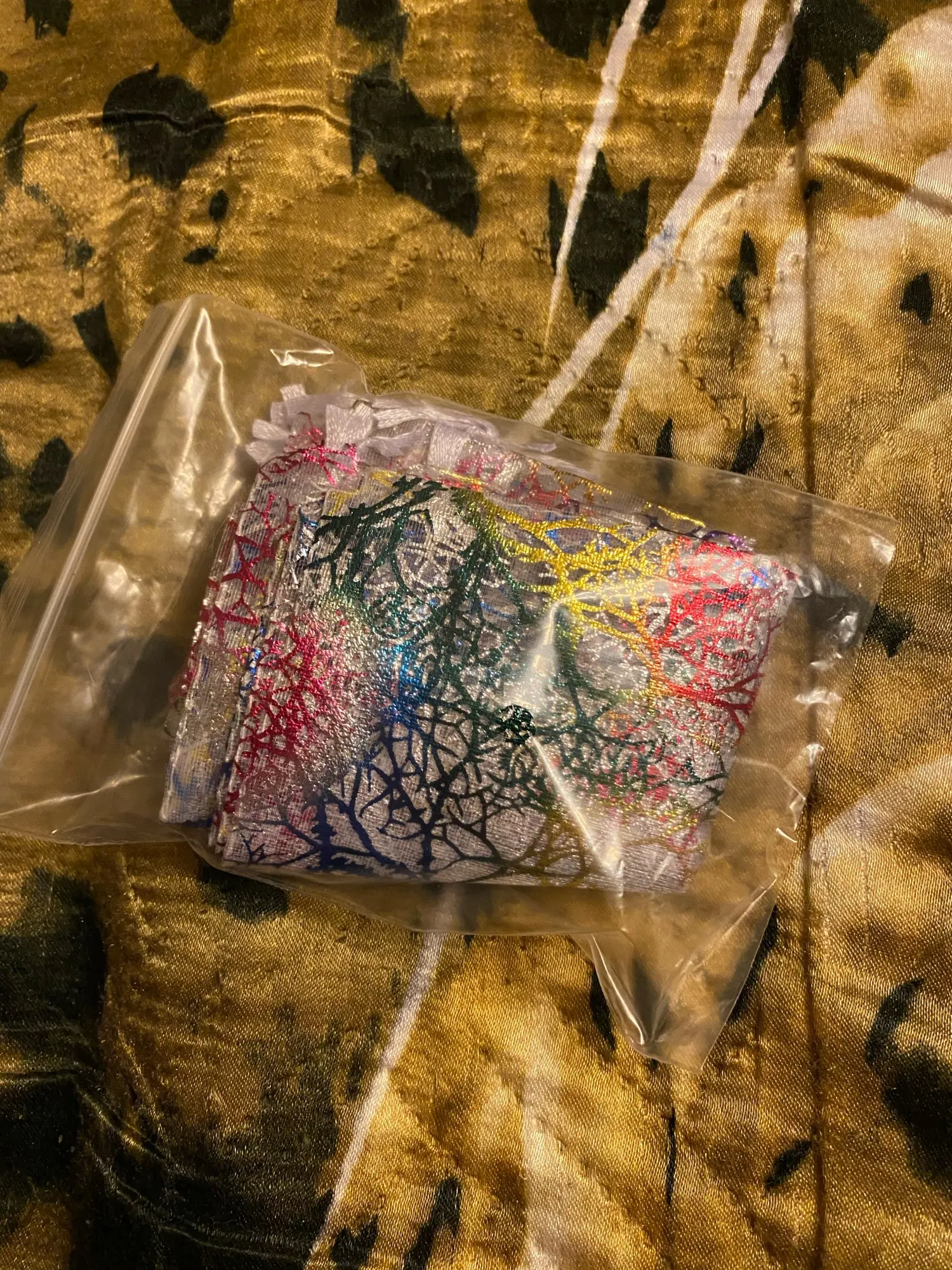 получила! заказ шел 2 месяца но пришел! до этого заказывала в других магазинах и посылки так и не пришли и не было возможности из за сбоев на сайте открыть спор. Мешочки брала для колод Таро. благодарю продавца и рекомендую!!! Ещё раз спасибо.
