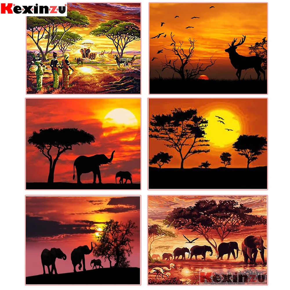 3d Алмазная живопись kexinzu, Африка, животное, для творчества, алмазная вышивка, 5D квадратная мозаика, полная картина по номерам, стразы, слоны