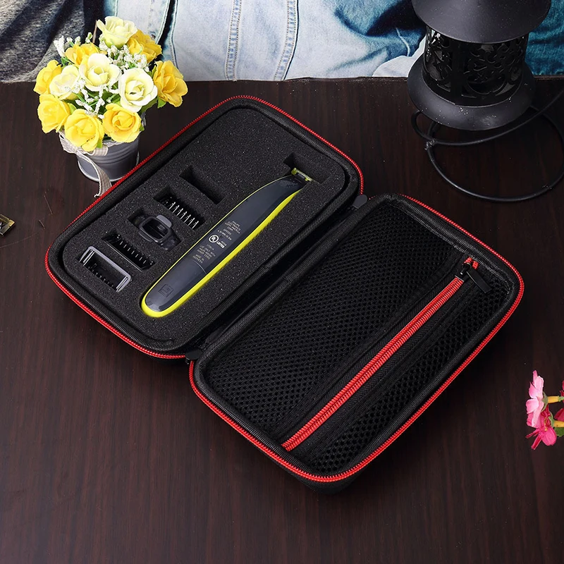 Особенности: 1. Philips Norelco OneBlade Hybrid электрический триммер бритва QP2520 / 90 QP2520 / 70 QP2630 / 70 QP2530 органайзер и чемодан. 2. Сетчатые сумки для аксессуаров и других основных предметов. 3. Прочные вставки из пены могут быть лучше организованы. 4. Дополнительный сетчатый мешок отсека для настенного зарядного устройства, дополнительное положение губки для замены лезвия с одним лезвием. 5. Классическая молния удобна и легко открывается и закрывается; Жесткая коробка Противоударная, водонепроницаемая, практичная и прочная Размер: 18,2*10,7*5,7 см