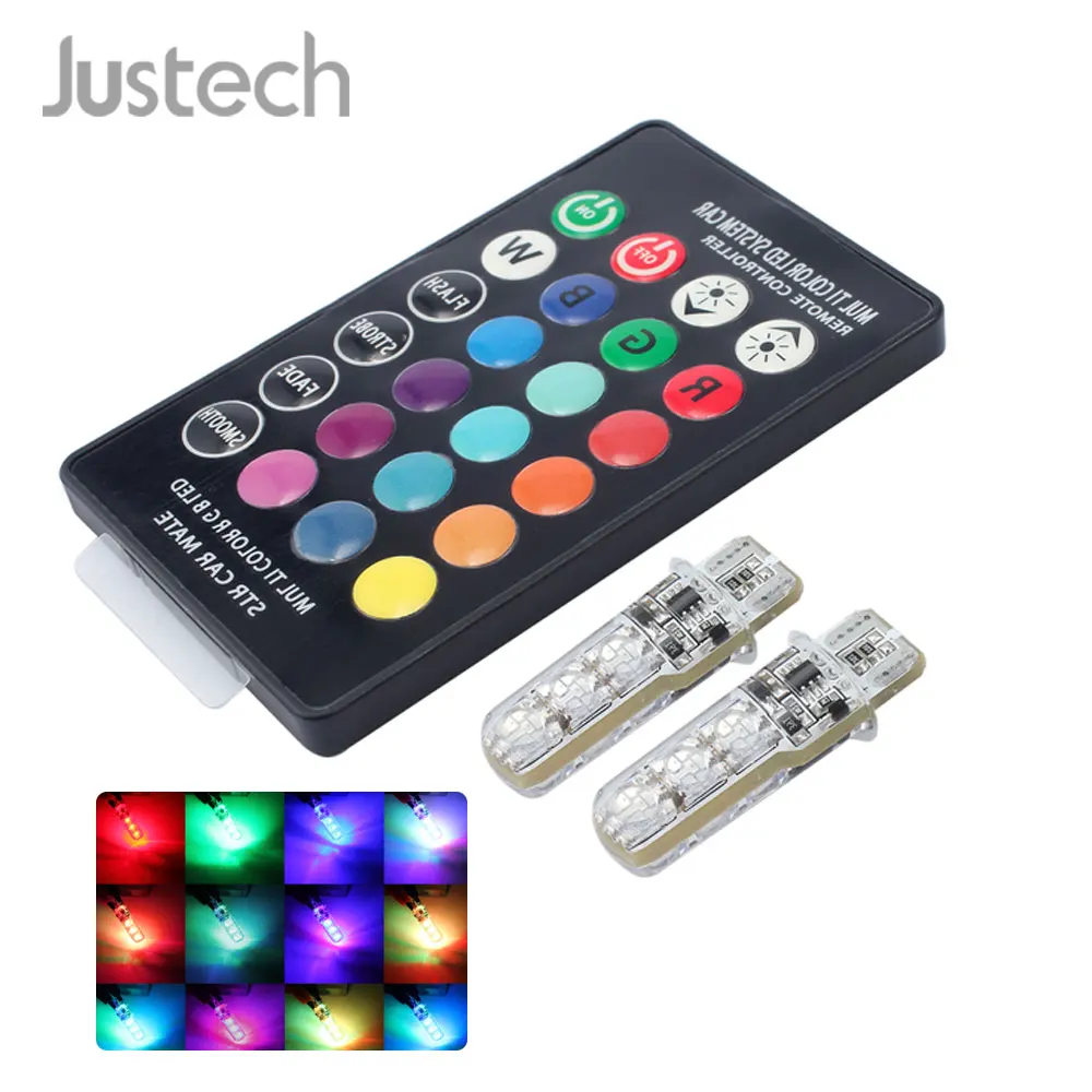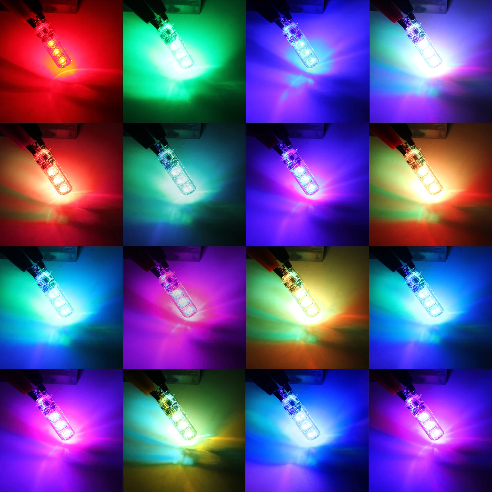 Автомобильный светодиодный светильник FEZZ, атмосферный светильник T10 5050 6SMD RGB, силикон для авто, боковой маркер, купольный светильник для Чтения номерного знака, лампы с пультом дистанционного управления, стробоскоп