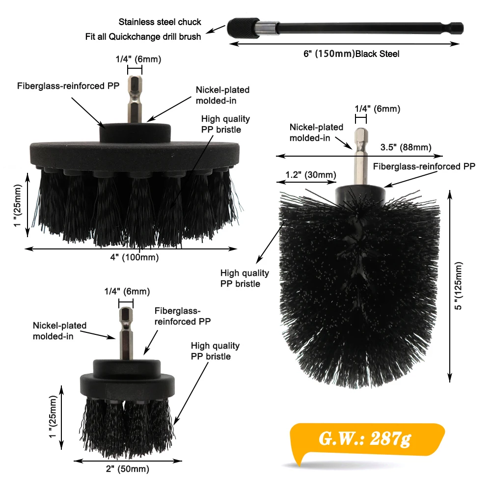 Щетки для электроинструментов в основном используются для уборки дома, таких как диван, кухня, ванная комната, дерево, плитка, автомобильные колеса и т. д.
