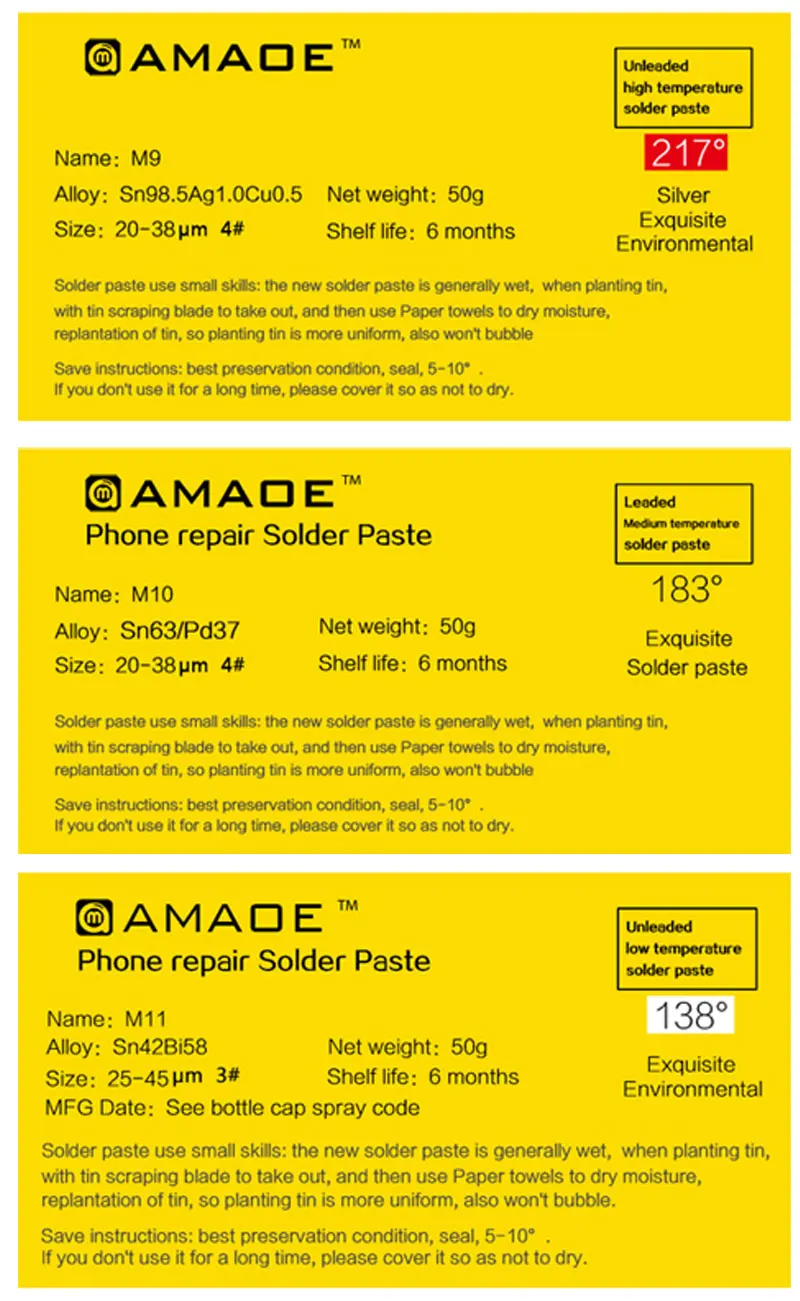 Вес: 50 г/шт. О наших трех видах паяльной пасты, разнице и характеристиках использования при высоких, средних и низких температурах: