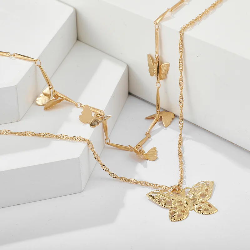 Гламурное ожерелье 2020, модная новинка, индивидуальное многослойное женское ожерелье с бабочкой, оптовая продажа женских цепочек в богемном стиле
